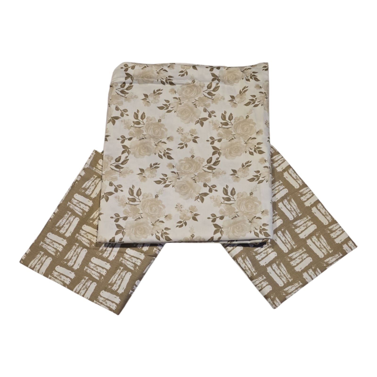 Add a touch of timeless elegance to your bedroom with our beige floral bedsheet set. Made from soft, breathable cotton, this set includes a beautifully printed floral bedsheet and two matching pillow covers with a subtle abstract pattern. Perfect for everyday luxury and effortless style.