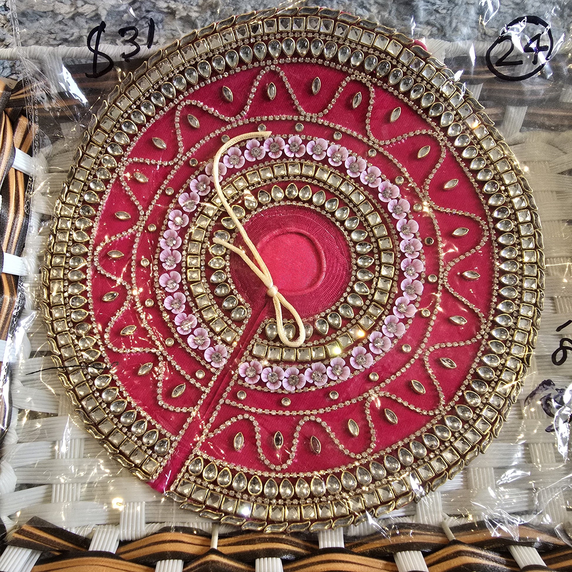 Elevate your Laddu Gopal ji's appearance with this exquisite handcrafted Deep pink poshak, featuring luxurious stone work, delicate floral embellishments. Ideal for festive celebrations like Janmashtami, daily darshan, or temple décor, this outfit adds a divine charm to your deity.