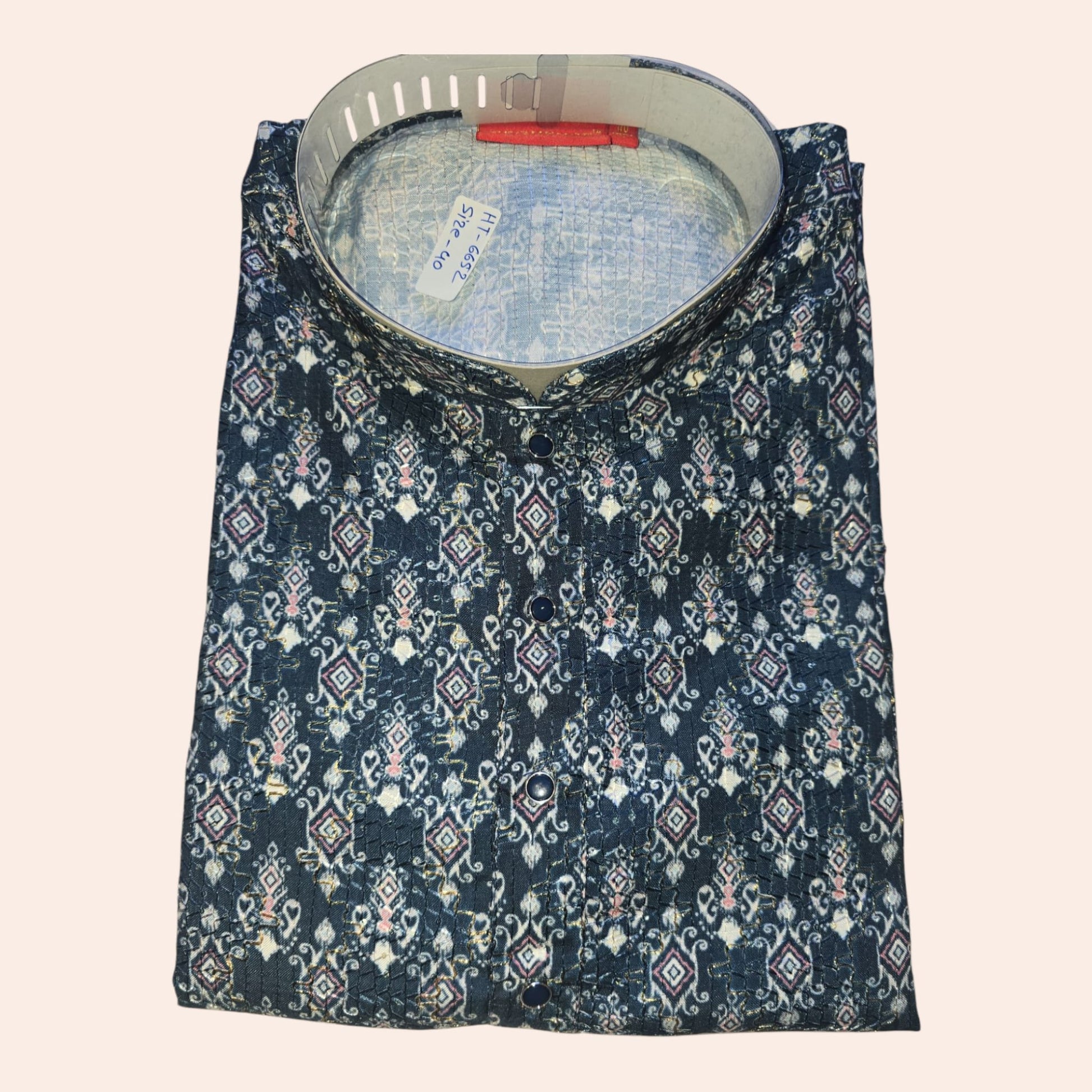 Men’s Printed Cotton Blend Kurta – Navy Blue & Off-White Pattern (MK22)