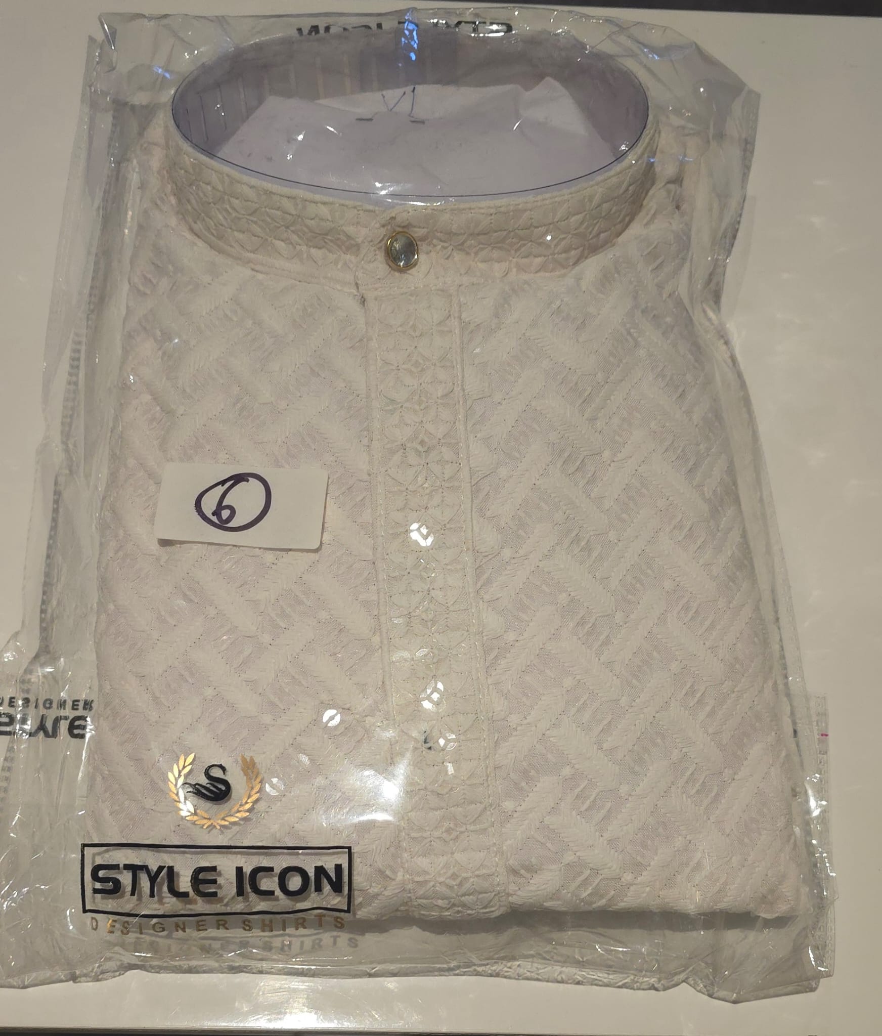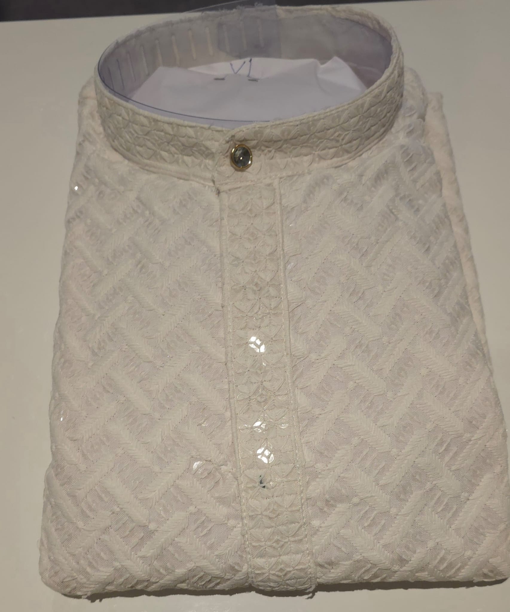 Add a touch of elegance to your wardrobe with this men's kurta, crafted from premium fabric with intricate floral embroidery. Perfect for festive occasions, weddings, and cultural events, this kurta features a subtle, textured pattern that enhances its sophisticated look. The mandarin collar with a single-button closure gives it a modern yet traditional appeal. Lightweight and breathable, this kurta ensures comfort while keeping you stylish. Pair it with traditional churidars or jeans for a versatile look that stands out. Embrace style and tradition with this stunning kurta, a must-have addition to any wardrobe.