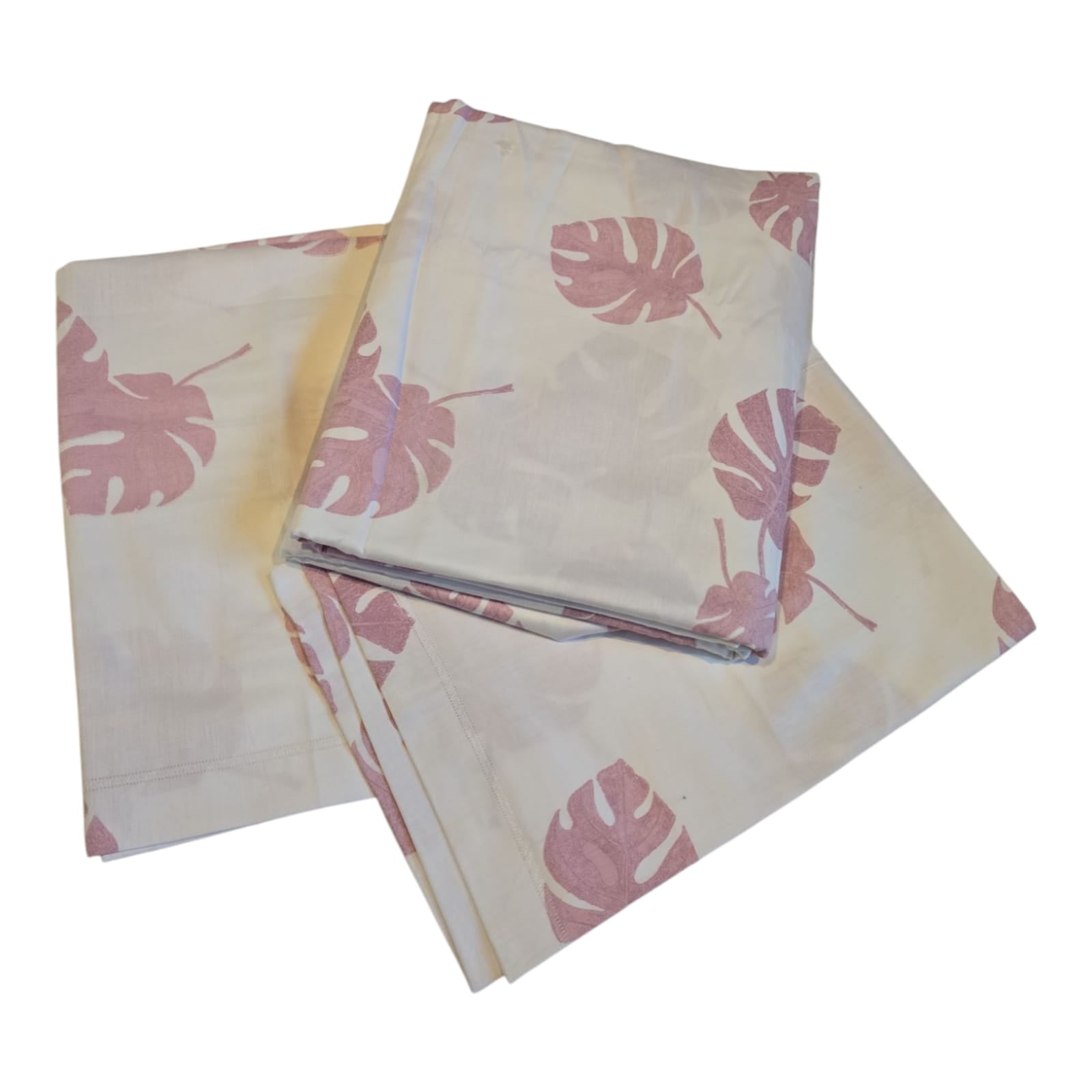 Premium Cotton King Flatsheet Set - White with Pink Leaf Print- B36